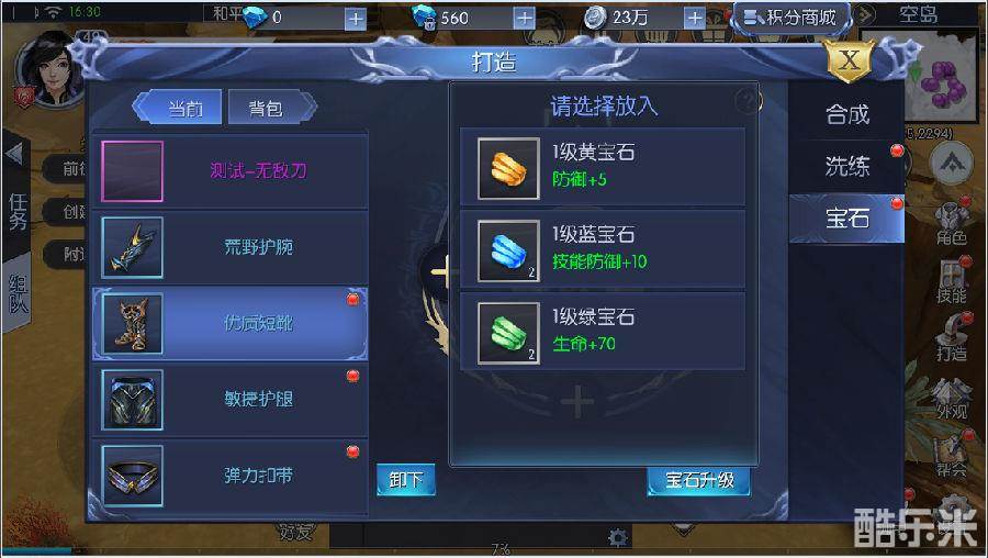 将宝石镶嵌在装备上就可以提升装备的属性,从而提升角色属性。