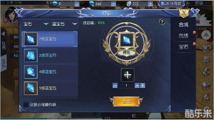 3个同色低等级的宝石可以升级为对应颜色的高等级宝石,但是宝石升级的成功率也不是100%的。其成功概率如下:(宝石升级须谨慎)