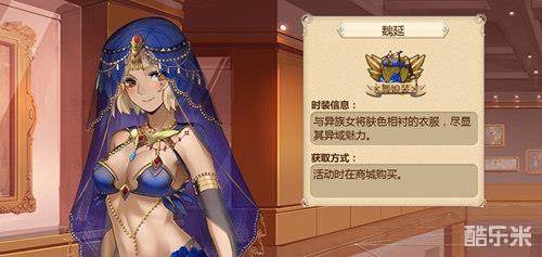 评价:舞女这套时装有两个亮点,一个是会改变攻击的方式,1、2技能均会变成近战的刺杀攻击,另外一个是这套时装有两个截然不同的CG图,一张正常画风的,一张Q版的。考虑到魏延是T1队列中必练战姬,这套异域风情的时装无论外观特效还是属性都是非常良心的,性价比比较高,还是比较推荐土豪和月卡党入手的。