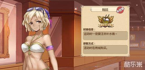 获得渠道:1.夏季活动在商场中购买碎片,一片1250钻石,共需要8片。大概需要1w钻 2.遗迹中时装商人处购买,原价1250钻石一片,会打折。3.完成水镜的宝箱剧情后,会获得一个箱子,打开会随机获得一片黄忠或魏延的泳装皮肤碎片。