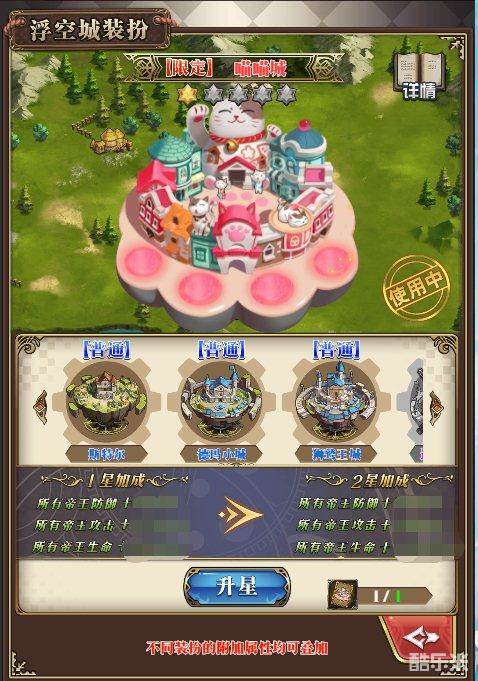 此外,重复获得的皮肤可以用于城堡的升星,从而提升帝王的属性以及综合实力。对于喜爱斯特尔研究院的各位玩家而言,增加的属性固然重要,但更为重要的当然就是精美的皮肤可以彰显自己的个性了!由大家一手打造与众不同的浮空城,你就是人群中最闪亮的崽!