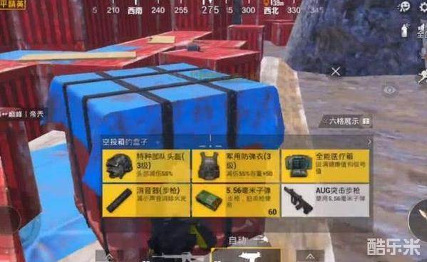 在这些零零散散的空投中,其实藏有1-2个成品空投,里面是有空投物资的,玩家刚进来就捡到了三级头、三级甲、医疗箱和AUG!
