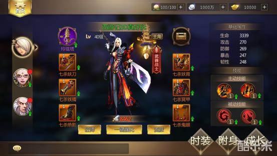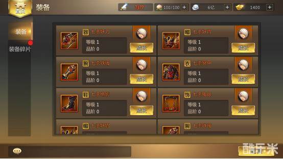 在主页下滑屏可进入装备界面,右滑屏可进入成长界面。