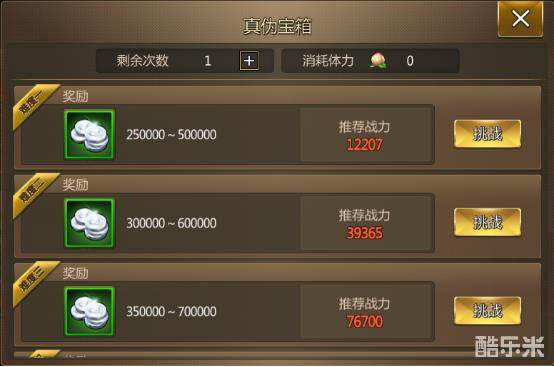 每个副本每天有1次免费的挑战机会,要记得挑战哦!