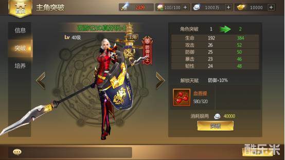 主角每升10级,可消耗血菩提进行突破,获得天赋属性加成。不同职业、不同流派根据不同的定位,其天赋属性也有较大的差别,可在主角信息界面查看。