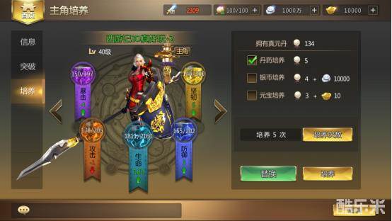 主角可通过消耗真元丹进行培养,获得额外属性加成。而随着主角等级提升,培养属性上限也会提升。