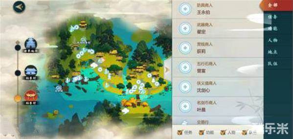 头上有卷轴的则是任务NPC,可接取直线主线任务。在打开小地图时,右边折叠标志打开可以看见分类有全部、任务、功能、人物、地点、队伍。可利用小地图来找到自己想要找的一些NPC。