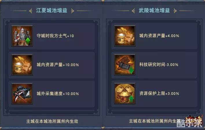 各个郡城的增益效果不同