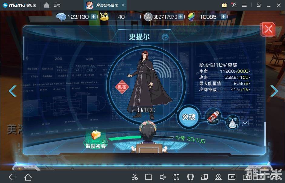 可以看到这里进行突破需要消耗两种材料,一是这个角色的情报(没有就无法突破),二是一个叫幻想共振的新道具(这个不是必需的),当突破成功的时候会使突破的进度多一点