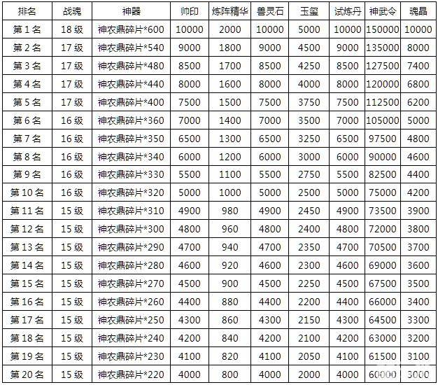 7、活动持续5天,结束后1个工作日内(即9月3日18:00前)在布告里公布本次跨服消费排行榜最后获奖名单结果,前200名的玩家将会获得各种丰厚奖励;
