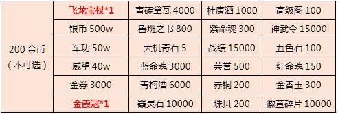 2、榜主可以从以上列出各项资源中,任选4项(不可重复),与200金币一同组成本期恩赐大礼包;
