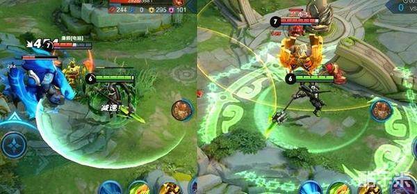 1技能挥动方天画戟出现墨绿色特效,命中目标后,头顶出现的附魔标记,由戟变成了魔爪饮料的绿色印记;