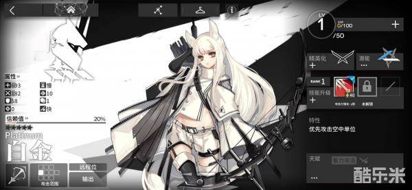 亮点是增加攻击范围,点杀蜘蛛飞机很不错,爆头小兵箭箭红字1000+非常爽快,可惜对重甲单位仍然无力,爆发能力也不足,属于比较中庸的类型。推荐练,但如果有能天使蓝毒还是推荐先练他们。