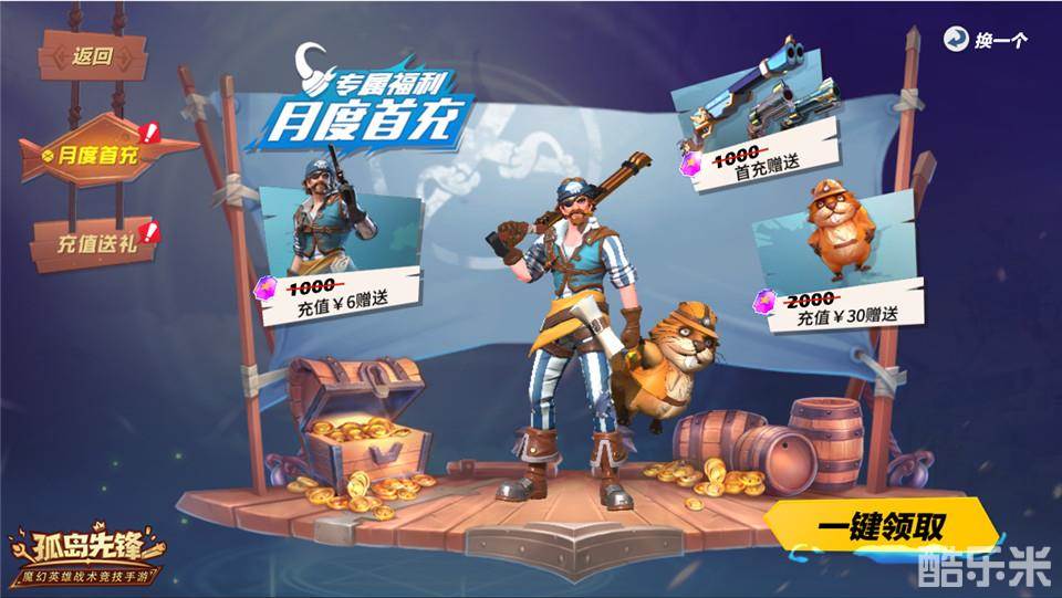 为回馈玩家厚爱,本次更新后将在保留原首充奖励的基础上新增月度首充奖励。玩家可在大厅—首充—月度首充界面提前预览、选取奖励种类,充值后即可领取对应的珍稀道具。本次更新的奖励中,赏金猎人的海盗风系列格外引人注目,除了角色皮肤“湛蓝海风”之外,还有专属武器皮肤“劫掠者猎枪”和“水手双枪”,而变身宠物皮肤“坚果登山队”则凭借可爱造型萌倒一片。