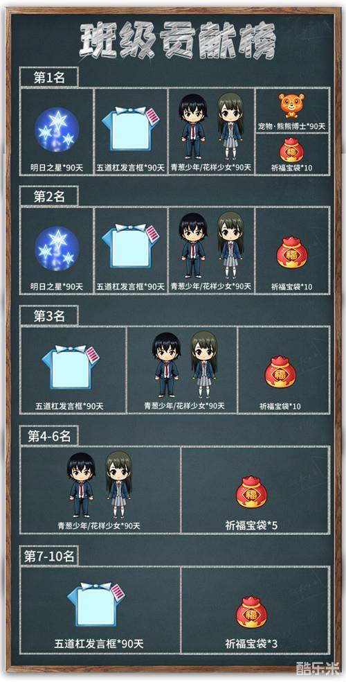 1. 在活动结束后,根据每个班级的荣耀点数进行排名,为排名第一的班级中所有成员颁发奖励(需至少贡献100点荣耀的班级成员才能领取奖励)!