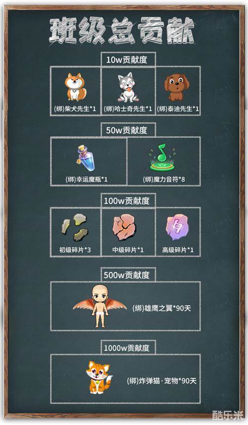 3. 在活动期间,只要班级的总贡献达到某个数值,所有至少贡献100荣耀的班级成员都能够领取相应奖励!