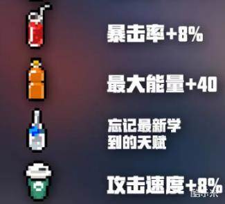 除了牛奶以外还有7种饮料,剩下7种饮料中有6种都是增益效果,只有“忘情水“有可能会带来负面效果,因为它的效果和奸商一样都是让你遗忘最后学习到的天赋。如果你的最后一个天赋是你需要的天赋那么你可以选择不喝”忘情水“。