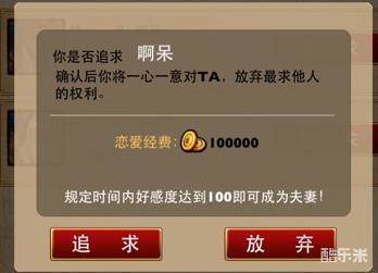 约会:已经有追求对象或者被追求的玩家可以通过约会来互相增进好友度,好友度达到一定的要求即可成为侠侣;
