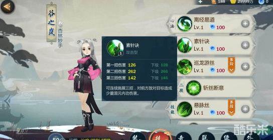3、 两仪化形线性伤害,伤害非常的高,是纯阳弟子主要的清怪手段,需要气点来触发,也推荐加满,后面2个技能不推荐加了,都是援助技能。不是很重要。