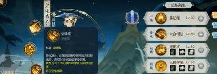 触发技能一:狂龙舞棍。施展期间霸体2秒,并将半径内6尺目标击飞。少林弟子强力输出技能,触发条件为使用内劲防御成功防御住敌对目标攻击即可,如BOSS的地毯(BOSS技能的一种叫法,游戏内表现为红色框框技能)以及PVP中对方玩家的各种技能伤害。