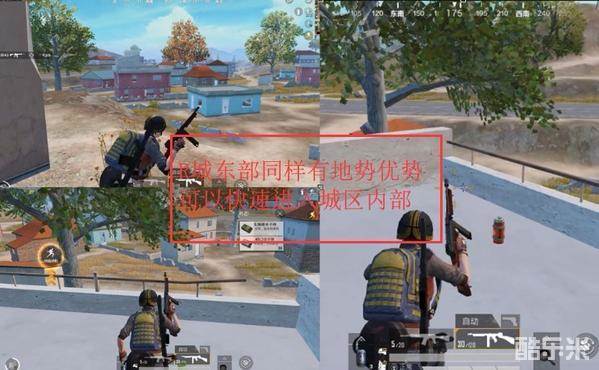 鉴于“R城”是一个房屋分布错落,并且有地形高低落差的点位。所以,小编这里推荐玩家从东面、南面和北面三个地势较高的方位降落。如此一来,玩家既可以获得地形优势,又可以一边搜集物资,一边向城区内部逐步推进,不必担心有被其他竞争者从后面攻击的风险。