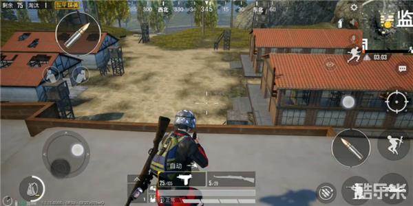 如果我们没能抢到警察局这个点,就剩下两种选择,第一种等警察局的人上楼顶我们在B区域的二层房子里直接秒。第二种就是找把喷子或者UZI去功楼。