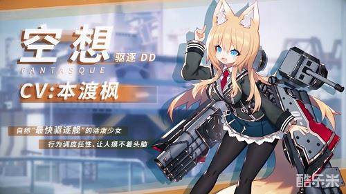 超级驱逐舰「空想」是个俏皮活泼的少女,自称为“最快驱逐舰”的她是个急性子,热衷于追求高速移动的爽快感,因此也在真朱湾基地内造成了不少麻烦。经常因为明显不像驱逐舰的身材被同伴吐槽。
