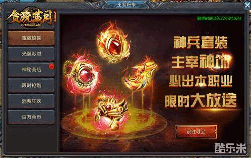 而除了主宰神兵外,诅咒战甲、命运之刃等超强装备也会限时出现在寻宝箱中。喜欢的玩家可不要错过了!