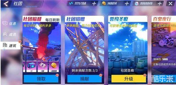 如果社团只有这些那岂不是白叫了!毕竟我们可是要聚在一起搞事情的人!在《暮色方舟》中社团还会有日常的社团福利、捐赠、誓约圣痕、及百鬼夜行。