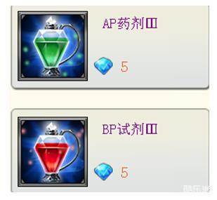 AP药剂,BP药剂,卡包扩充卡:这3个消耗品的出处是一样的,包括商城用星钻购买,幸运转盘转出来,黑市商人处购买。这2个药剂共3种级别,可以恢复AP/BP 30%, 50% ,100%。卡包扩充卡则可以增加5卡包上限。黑市商人中的这三种物品要比商城处要便宜!