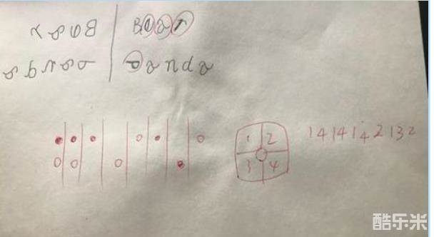 四个按钮 左边2个代表熊猫的位置 一上一下。右边两个代表熊的位置。他们两的位置和最后按按钮的顺序楼主也已经画在最后的纸上了。打开盒子你就通关了~~~
