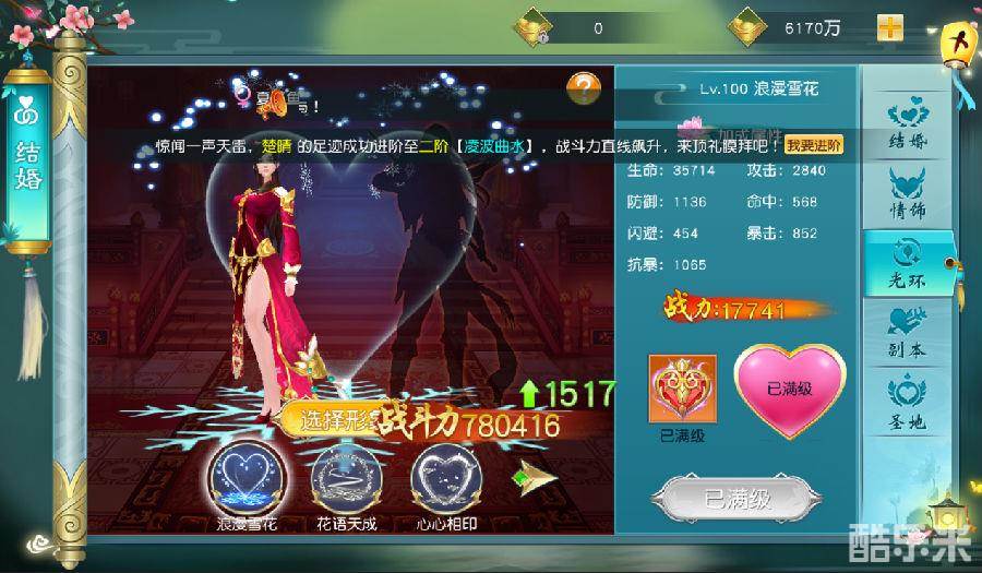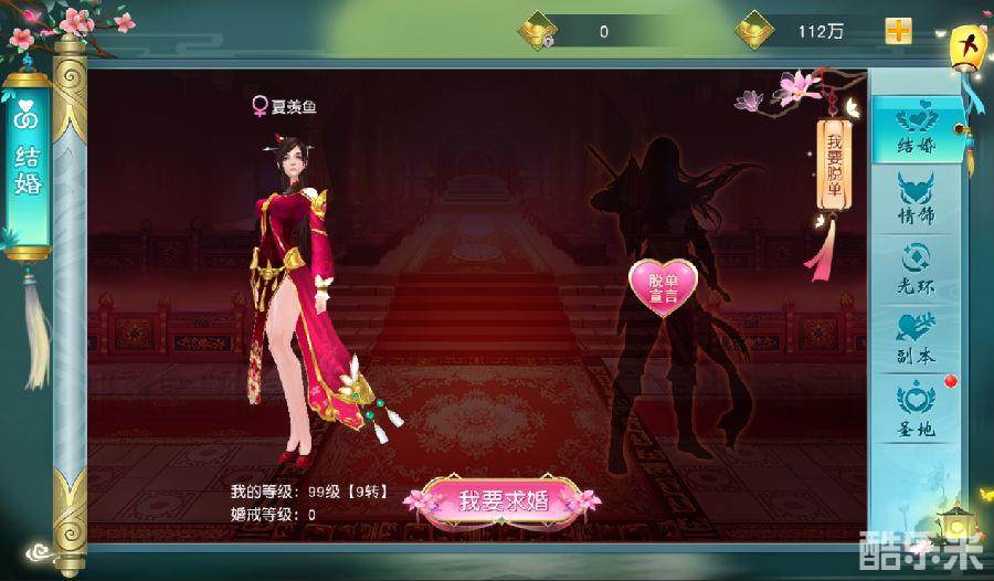 玩法:等级达到后,玩家可与心仪对象结为伴侣,每天可以免费开启婚宴,在情缘副本并肩作战,收集婚戒材料提升战力。还可以签下契约,见证爱情,领取专属爱情称号。