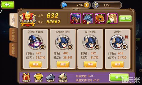 在游戏中的竞技场是可以跟真实玩家pk的地方,战斗力越强,排名越靠前哦