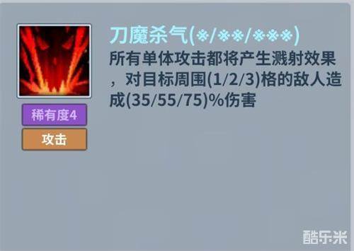 刀魔杀气的分裂伤害可以稍微好打一点当前版本前期最猛的屁孩枪+无名剑影组合,2星以后aoe能力就很强了。(只适用于单体技能)