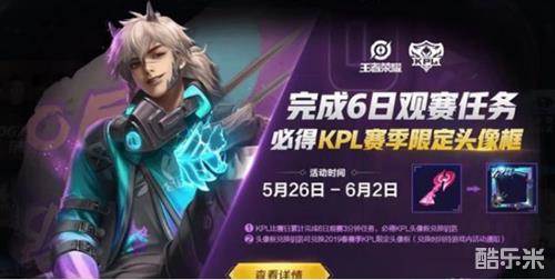 限定头像框的可以在5月16号到6月2号的时间内获取,皮肤上线的时间就是26号。只需要大家连着6天观看比赛,就可以拿到这款限定头像框,兑换的时间是在6月4号到11号。