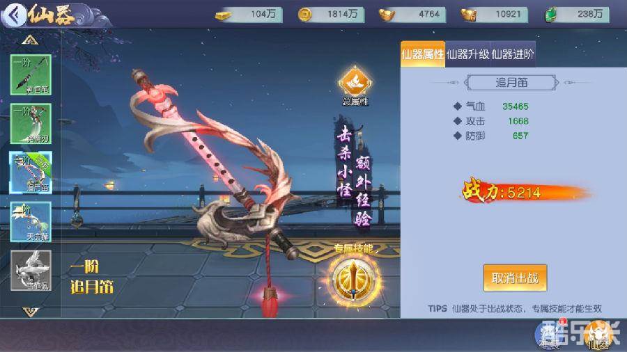 最后编辑于6年前仙器可增加角色属性数值,每个仙器增加不同的属性,可以多种配合。当每个仙器被激活时,还能激活对应仙器的被动技能,攻击敌人时自动释放技能。(也是外观展示其一)