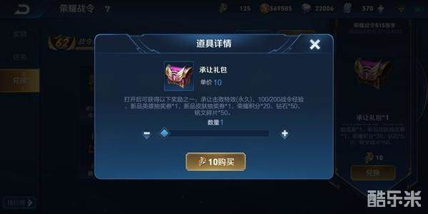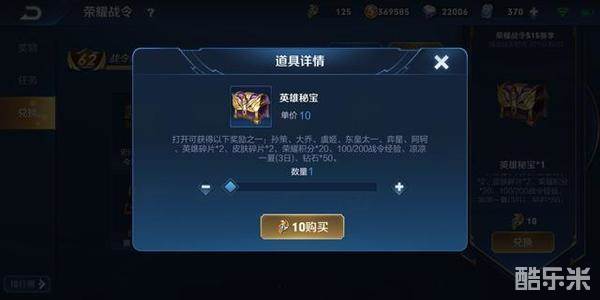 金币600,售价10战令币,对于新手来说金币是匮乏的,用100个战令币换6000金币,其实也可以,半个英雄出来了,但是除非你真的很想要某个英雄才建议去换,毕竟如果为后期着想,金币作用就会被下降很多。英雄碎片不推荐,100个战令币换金币能换6000,基本上是半个13888的英雄,而英雄碎片58才能换一个13888的英雄,从性价比的角度来讲,用处不大,强烈不建议。皮肤碎片还可以,不过每个赛季的限制是10个,跟金币和英雄碎片一样,10个皮肤碎片相当于1/3的伴生皮肤,如果你皮肤不多,还是可以换的。