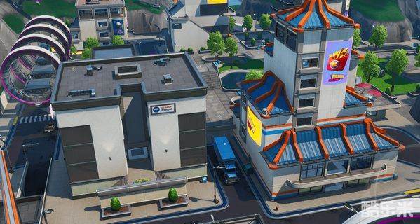 斜塔小镇在第八赛季末被火山喷发摧毁,但第九赛季后炫彩斜塔在废墟中重现建立,这座建筑和其他地点建筑完全不同,充满了现代科技感。