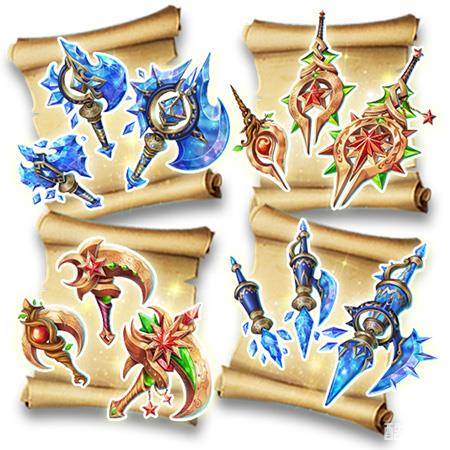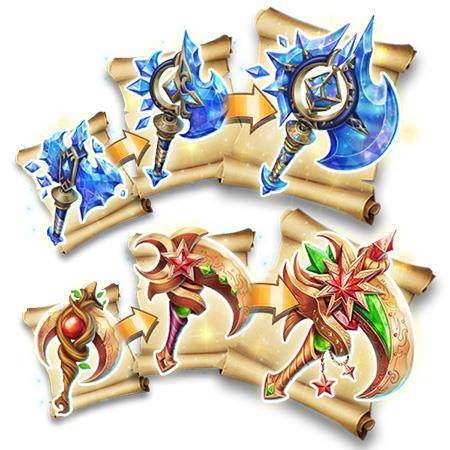 最低等级15级,最高等级53级,最低技能等级中断I,最高技能等级中断IV,6种不同的斧头和小斧图纸,等级跨度大,技能等级覆盖广,不论什么级别的英雄都会用的到。