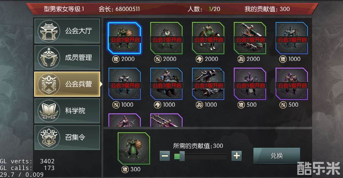 公会兵营可以使用贡献值兑换士兵,公会等级越高可以兑换的士兵等级也越高。