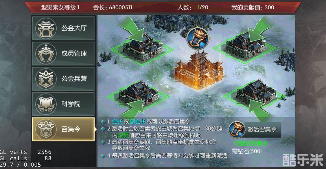 当会长或者副会长激活公会召集令之后,其他公会成员就可以响应召集令,将自己的主城迁移到召集令发起者的主城附近,实现主城集结,无论是向敌对势力展示实力,还是杀人越货,打家劫舍,公会召集令都是您的不二选择!