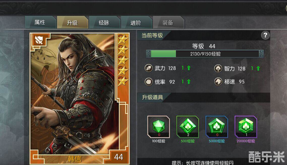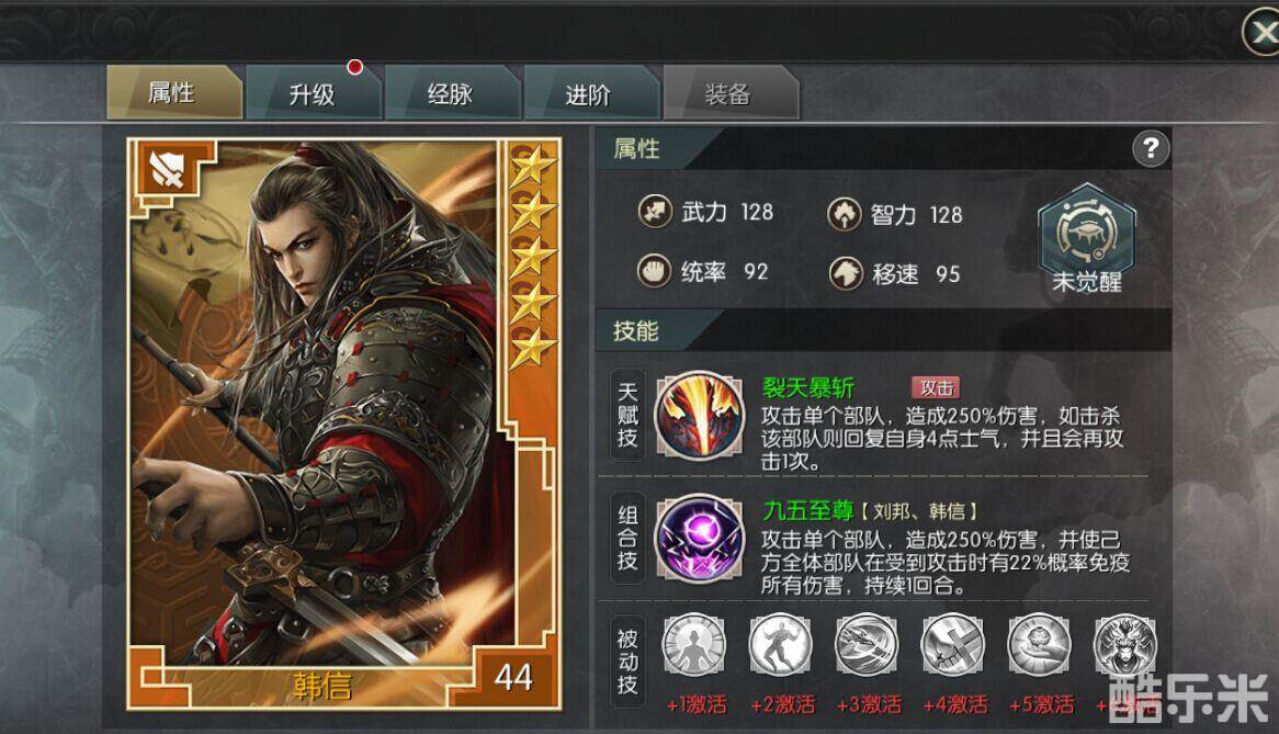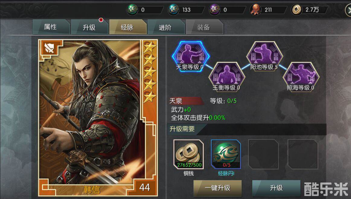 3、经脉系统:可以提高武将各项基础属性并强化该武将统率的部队属性;