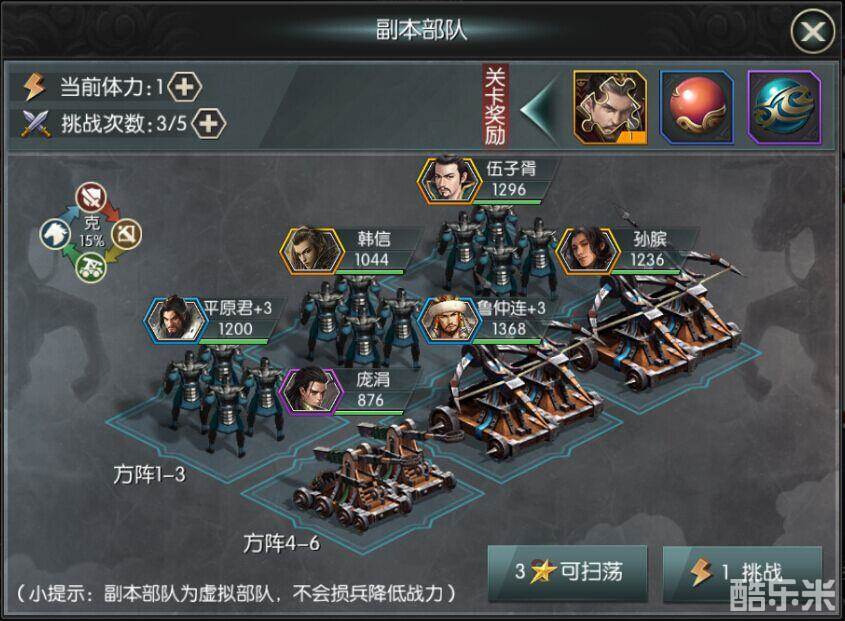 通关一些特定的副本也会掉落武将碎片,收集足够的碎片即可合成武将;另外副本宝箱中也会奖励强大的武将;