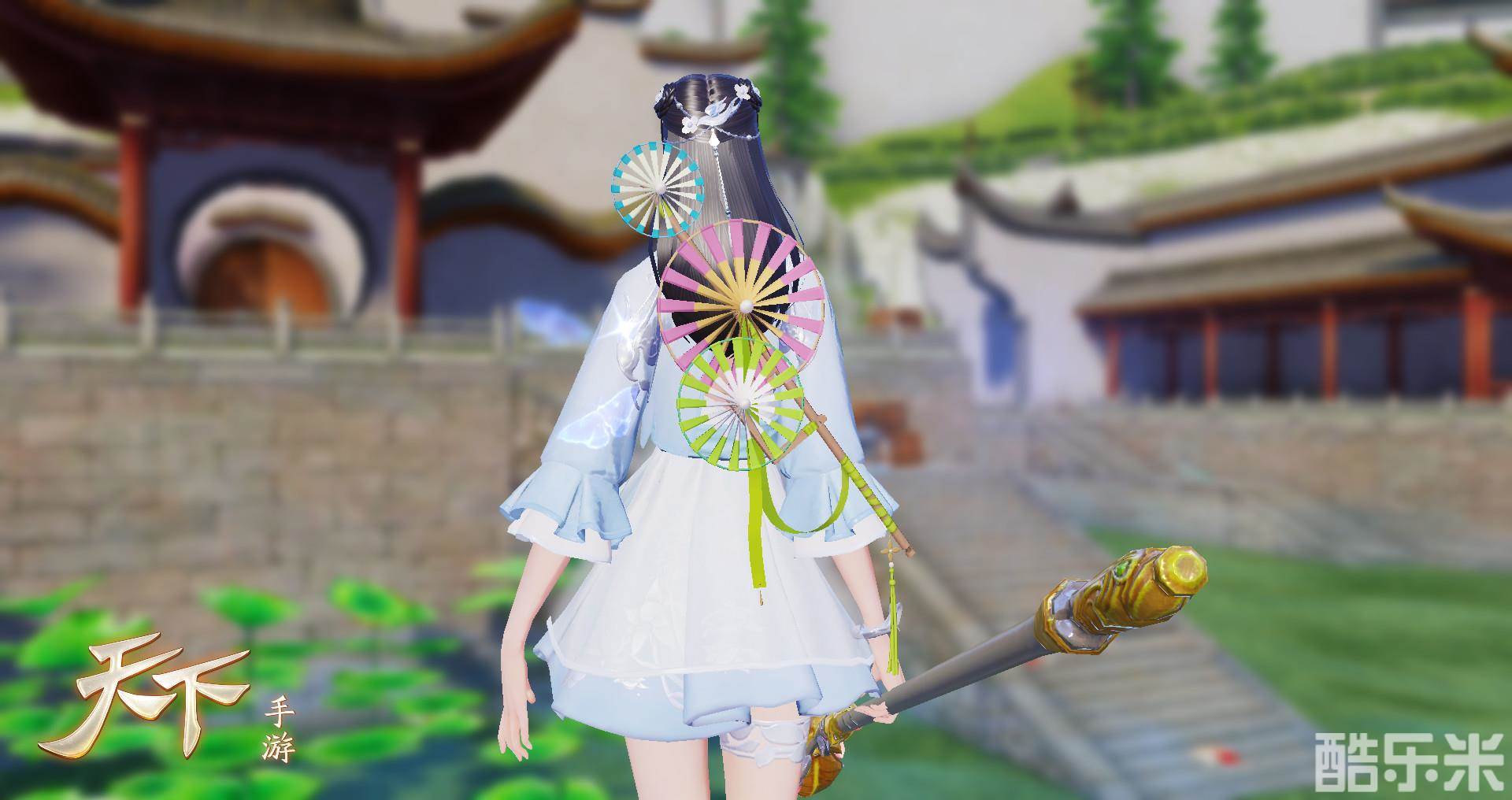 《天下》手游全新童趣挂件“蓝风儿”也跑来了大荒,只为给少侠的开学季装扮出一份力!蓝、粉、绿三色的三只风车,用一根缎面丝带仔细地绑在一起,趣味十足,背在身后更是妥妥的无敌减龄!据说拿在手中跑动还会有神奇的特效哦。赶快来试一试吧!