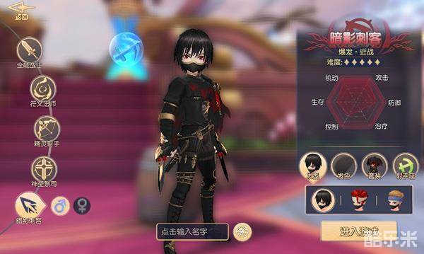 帅气的外形,酷酷的感觉一直是很多男性玩家的首选,暗影刺客具有超强的输出能力、机动能力和超强的闪避属性,同样也给玩家带来了很难的操作要求,单体输出超强,天赋自带5秒不屈(血量维持1点不会死亡)效果,PVP中潜行带给其他玩家尤其是血薄皮薄的输出职业无限恐惧。暗影刺客对装备及操作要求较高,不适合新手玩家及小R玩家,虽然输出和外形均为上乘,但还请各位玩家慎重选择。