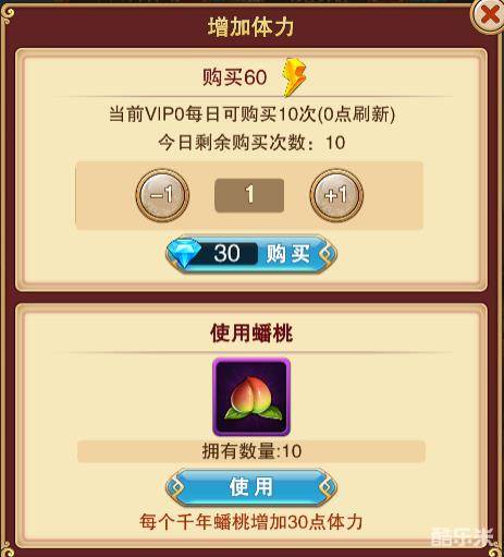 1、系统刷新:每隔一定时间系统将会自动恢复一定体力;