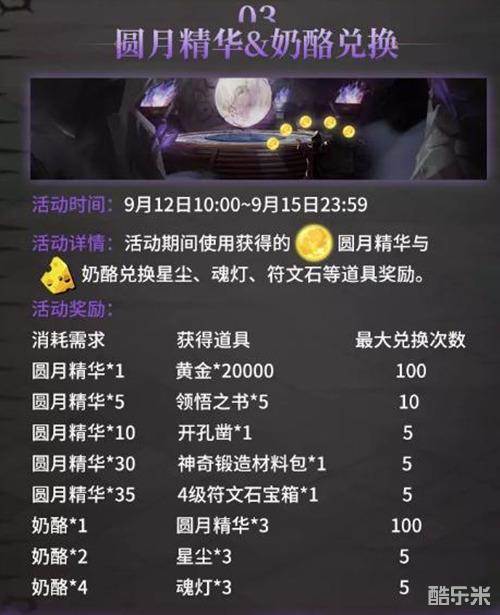 本次中秋节活动中,还有“圆月试炼”活动也同步上线。冒险家们完成指定的任务目标,即可领取不同数量的“圆月精华”,而“圆月精华”与“奶酪”一样,也可以用于兑换丰厚奖励。另外,只要累计获得“圆月精华”满50个(无论是否被消耗掉),都可以获得满月奖励,内含丰厚的水晶、星尘以及符文石奖励哦!