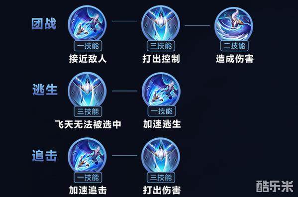 团战:一技能(接近敌人)——二技能(打出控制)——三技能(造成伤害)