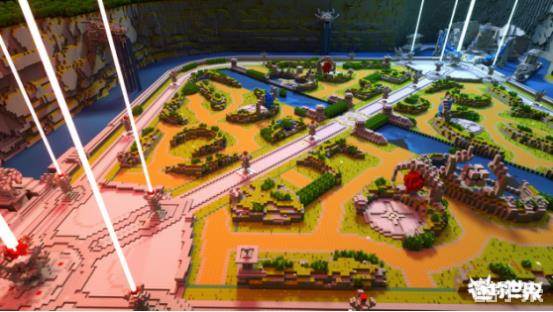 作品来源于生活,其他游戏也会成为《迷你世界》玩家创作的灵感,大热的《王者荣耀》就是其中一个例子。喜爱《王者荣耀》的大神玩家“古月苍泉”在《迷你世界》中投入了整整一年的时间,经过无数次修改调整,创造了沙盒版的《王者荣耀》。最终建筑呈现的效果令人惊艳,无论是上中下路路线规划、防御塔及兵线布局,还是野区及野怪设置,都还原了《王者荣耀》的核心识别点,并在作者的再创作中保留了沙盒游戏的像素特色美术风格。像素艺术形式高度抽象的表达,丝毫不影响王者玩家从中获得陌生又熟悉的即视感体验,反而产生了奇妙的化学效应。这个地图作品单从建筑层面就已经足够令人留下印象,但最令人惊讶的亮点,远不止于此。它并不是一个单纯的的建筑欣赏地图,而是原汁原味地还原了王者荣耀塔防玩法的对战地图,甚至还提供了将近90名英雄供玩家选择!通过《迷你世界》的触发器功能,这位大神为这幅地图赋予了灵魂,以实际行动证明了沙盒游戏的无限可能。