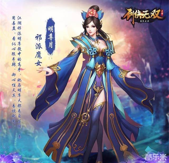 明尊月是江湖邪派明尊教的高手,娇媚可人,国色天香,却因为门派原因,世人皆惧之怕之,认为她是“蛇竭美人”。她与兄长明尊天都来自苗疆,善用毒蛊,看似心狠手辣,却心性天真,易被利用。中原的经历,让她一直怀念故土,却因为忌惮明尊教对待叛徒的狠毒手段,不敢轻举妄动。